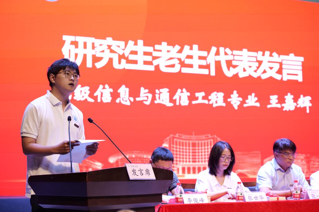 22级信息与通信工程专业研究生王嘉辉、24级电子信息类专业新生褚煜曈分别代表在校生和新生发言。王嘉辉结合自己读研以来的学习科研经历,激励学弟学妹们,扎实专业基础,勇于科研创新,在浙理遇见更好的自己,活出最精彩的人生!褚煜瞳同学表示大学生活是自由与自律的完美结合。面对未来,每一位浙理信息人都将崇尚科学、勇于探索、报国兴学、自强不息,成为这个时代下最勇敢的追梦者,实现自己的人生价值,创造出更加美好的未来。