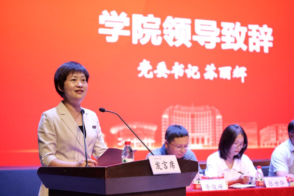 开学典礼在庄严的国歌声中拉开序幕。苏丽辉讲话,她代表学院向2024级新生表示欢迎和祝贺。希望同学们能够传承弘扬信息人的优良品格,勤于学习、勇于探索、敢于创新,甘坐冷板凳,锤炼真本领,在攻克发展新质生产力的堵点卡点上迎难而上、挺身而出,以特有的激情和活力勇立时代潮头,留下闪光的青春足迹。
