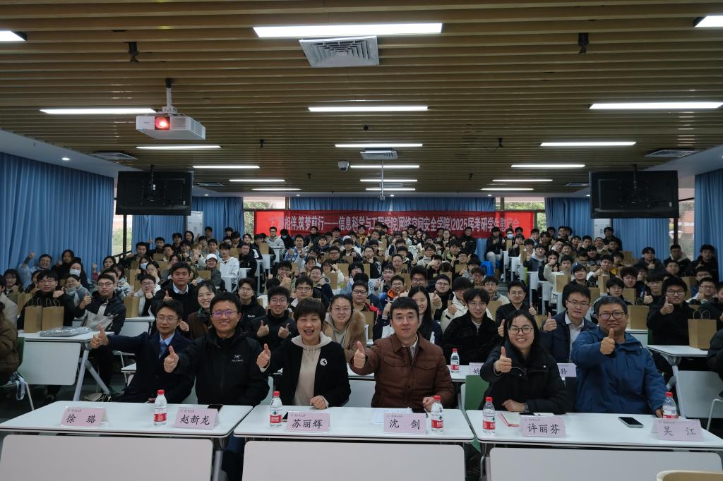 (网络空间安全学院)“‘E’路相伴 筑梦前行”2025届考研学生慰问会在2N119顺利举行。学院党委书记苏丽辉、院长沈剑、副院长赵新龙、党委副书记许丽芬出席慰问会,各考研班导师、班主任、毕业班辅导员参加此次慰问会。慰问会由毕业班辅导员孙童主持。