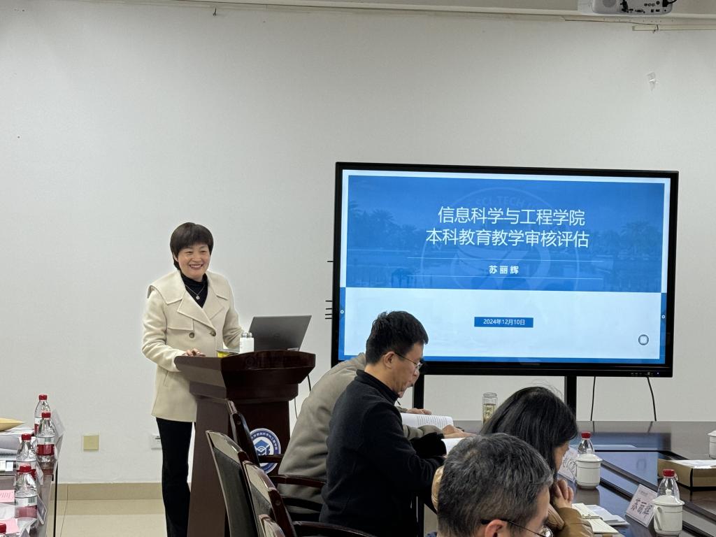 见面会上,副院长赵新龙代表学院对专家组莅临我院现场指导本科教育教学工作表示诚挚欢迎和衷心感谢。苏丽辉作专题汇报,她结合学院自评报告,对照七个一级指标总结了学院本科教育教学的特色亮点。