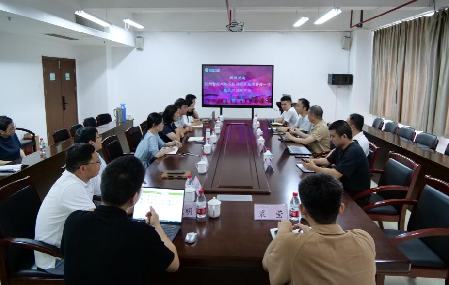 6月27日,杭州智控网络有限公司总经理钟楷一行来我院座谈交流,公司副总经理罗旭、研发总监刘信、研发副经理许旭、科技项目经理周超一同来访。学校对外联络办公室(校友办)副主任应黎君、学院党委书记苏丽辉、院长沈剑、党委副书记许丽芬、相关专业老师参加座谈。