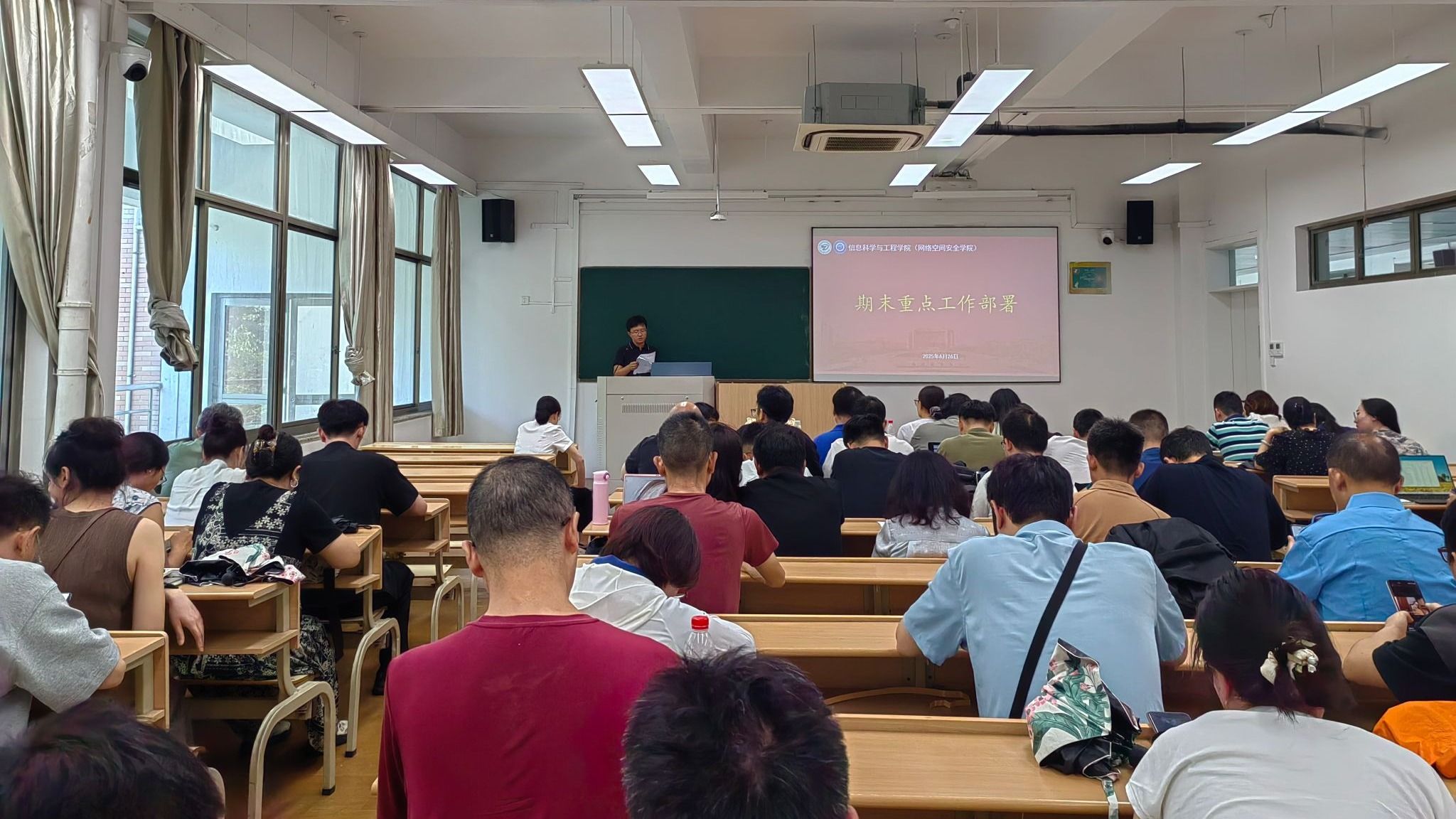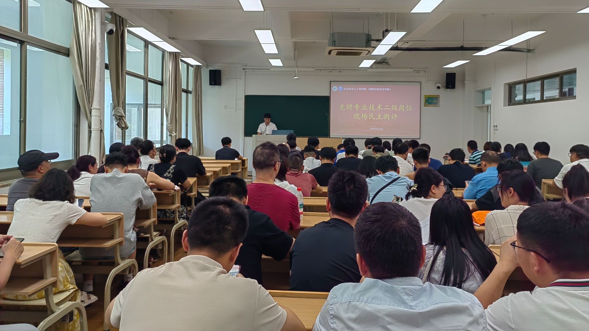 6月26日下午,信息科学与工程学院(网络空间安全学院)召开全体教职工大会暨竞聘专业技术二级岗位民主测评会,学院党政领导班子成员、全体教职工参加会议。会议由学院党委书记苏丽辉主持。