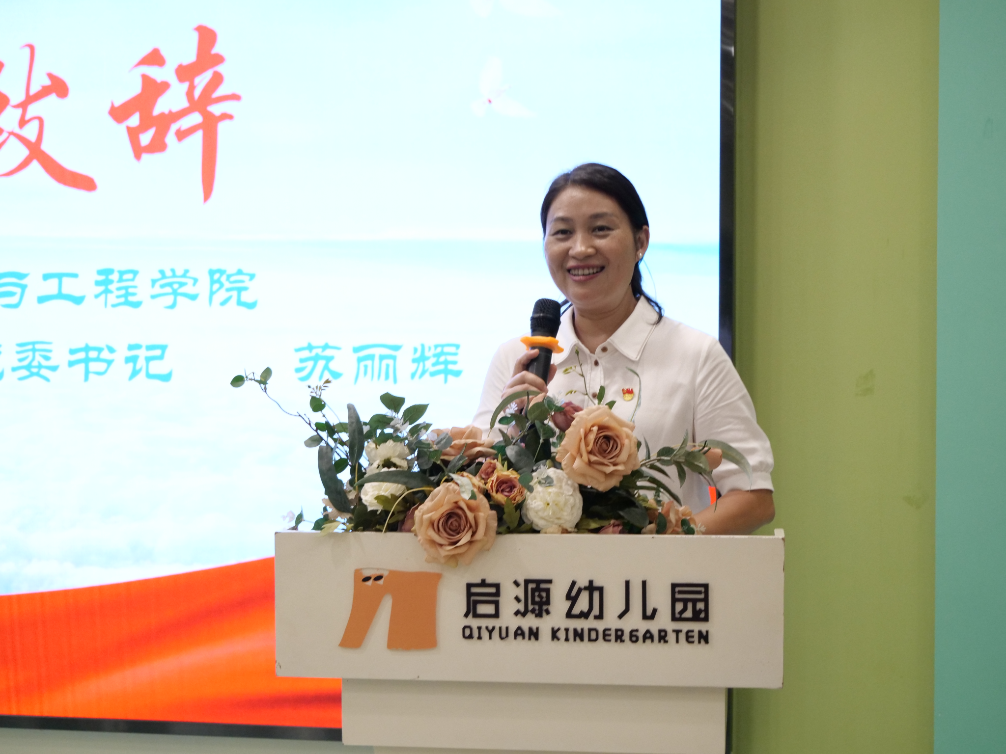 信息科学与工程学院(网络空间安全学院)党委书记苏丽辉为本次活动致辞,并介绍学院和党建基本情况。她指出,双方分别站在教育的最起点与步入社会前的终端,把握着育人事业的关键两端,要长期深耕在党建、科普育人、志愿服务等方面合作,让联建既有实效也有温度,努力实现对教育共同的美好愿景。苏丽辉邀请启源幼儿园师生来我院参观实践。