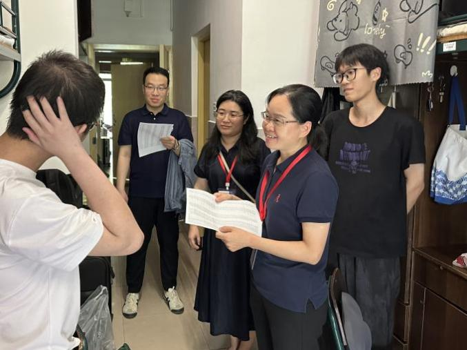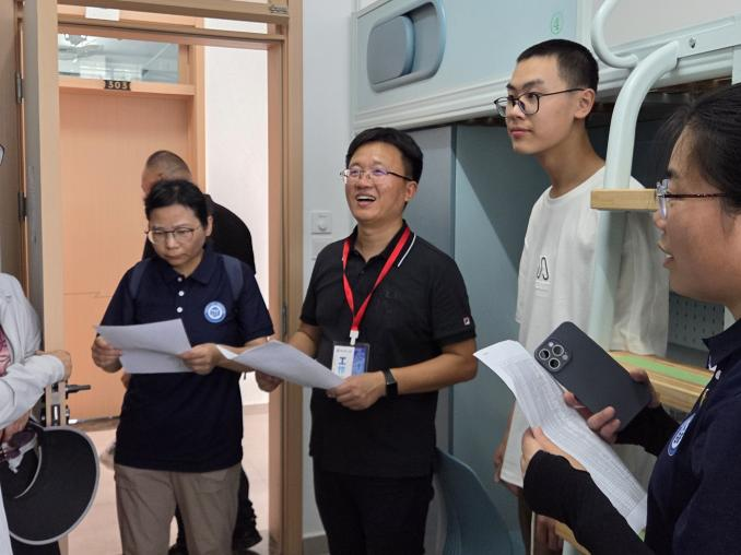 下午,学院党政班子、新生班主任、辅导员走访新生寝室,亲切看望刚刚踏入校园的2025级新生,询问新生们的住宿情况和生活需求,并与家长朋友亲切交流。新生班主任和辅导员告知新生始业教育和军训安排,并鼓励新生积极熟悉校园环境,做好学习和生涯规划。