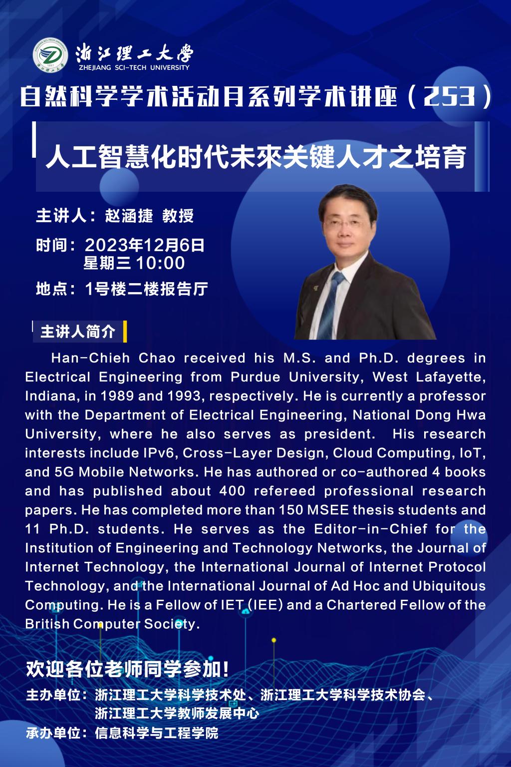 日上午,信息科学与工程学院邀请了台湾东华大学赵涵捷教授