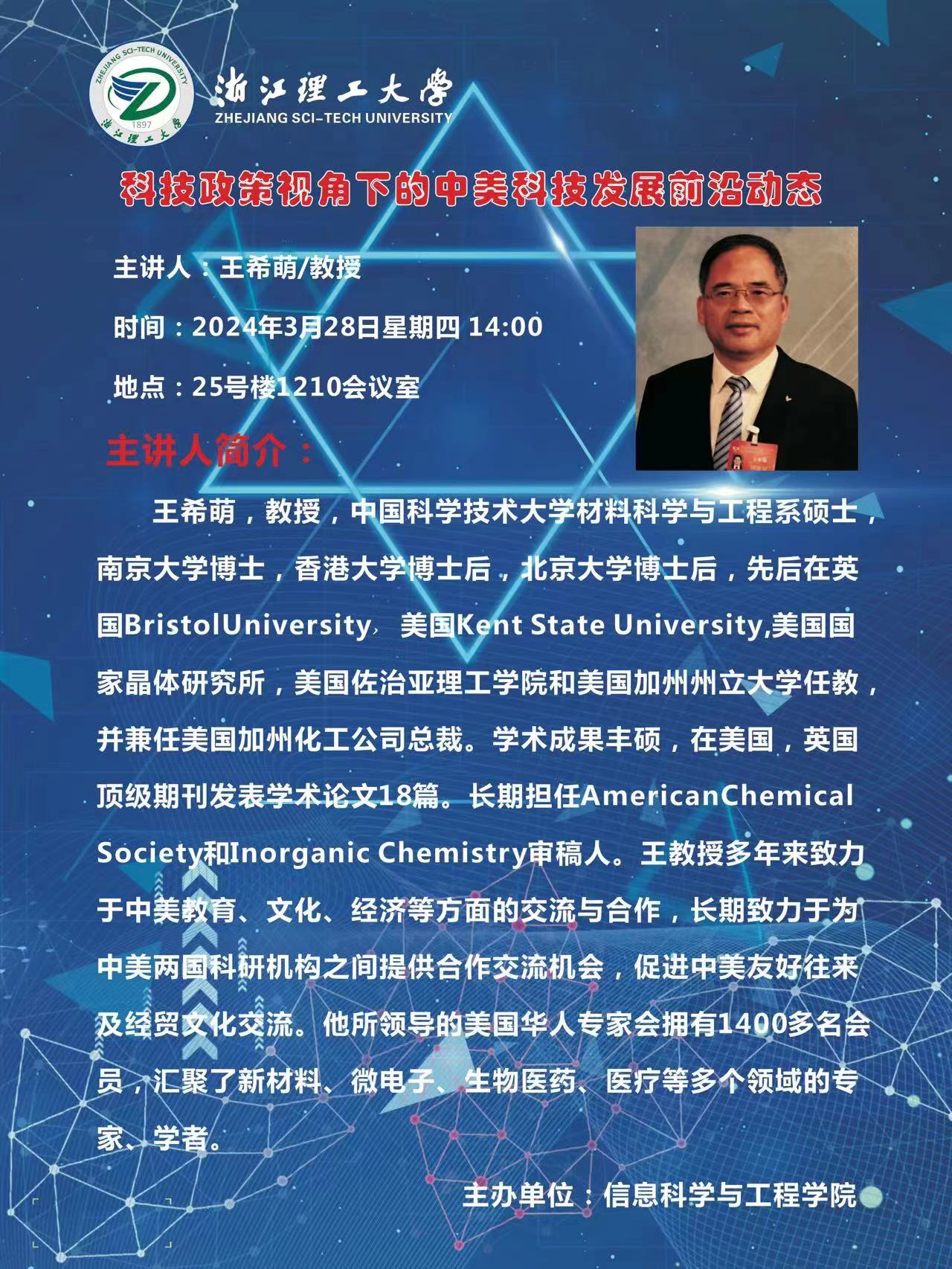 2024年3月28日下午,信息科学与工程学院邀请美国加州州立大学王希萌教授来访并做前沿学术报