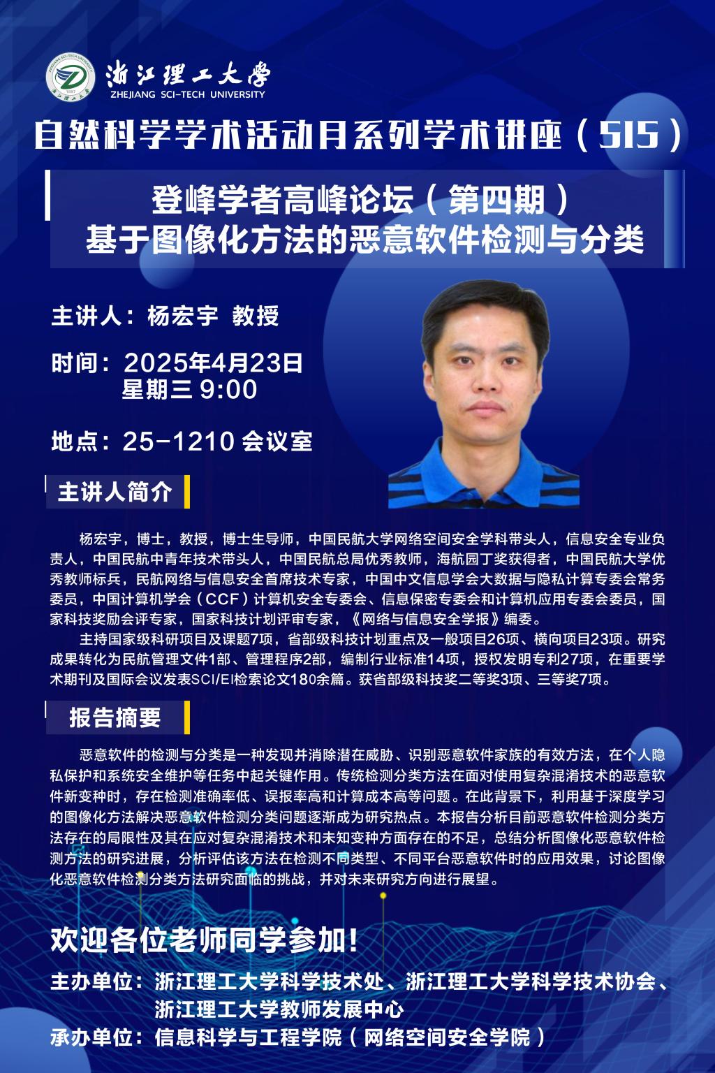 2025年4月22日-4月23日,信息科学与工程学院(网络空间安全学院)登峰学者高峰论坛(第四期)在25号楼1210会议室举行。会议邀请上海交通大学李建华教授,悉尼科技大学余水教授,贵州大学彭长根教授,中国民航大学杨宏宇教授,上海交通大学伍军教授前来做学术报告。