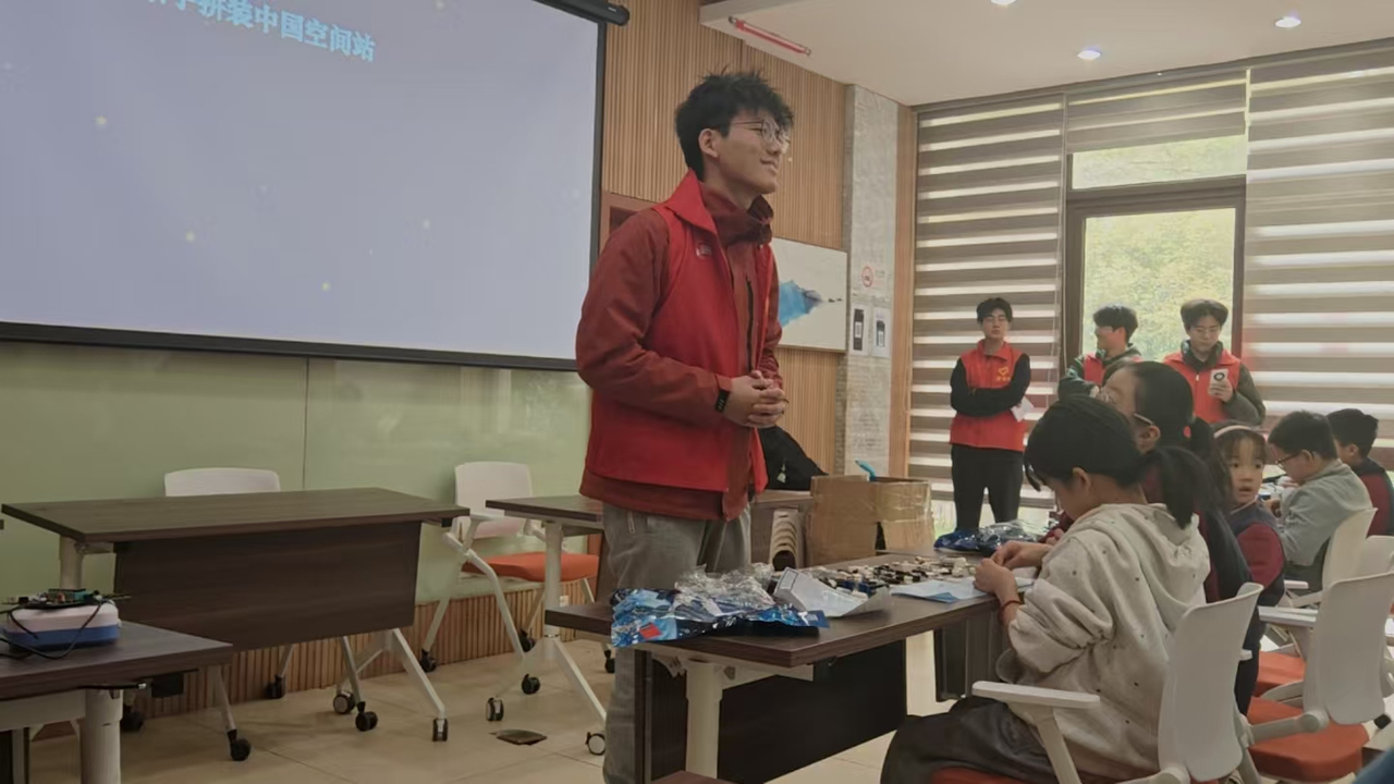 3月30日下午,浙江理工大学信息科学与工程学院(网络空间安全学院)的师生走进海天社区党群服务中心,为社区少年儿童带来了一场别开生面的“去天宫看看”航天科普志愿服务活动。