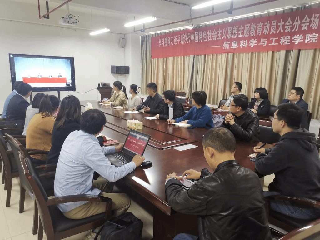 为抓好学习贯彻习近平新时代中国特色社会主义思想主题教育,信息科学与工程学院党委统一思想、凝聚共识、迅速响应,在“工作部署有章有序、氛围营造有声有色、工作落实有力有效”中扎实推动主题教育走深走实。