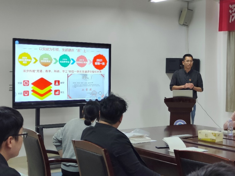 赵新龙作总结讲话。他指出,党支部是党在基层的“神经末梢”,是组织体系的“毛细血管”,也是教育、管理、服务师生党员的“基本单位”、“最后一公里”,更是党的全部工作和战斗力的基础。基层党建抓得实不实,关键看党支部。两个“双带头人”教师党支部书记工作室是学院的优势,全体党支部要充分利用好这一有利条件,相互之间加强交流,优势互补,实现共同进步。全体党支部要充分发挥党支部战斗堡垒作用和党员的先锋模范作用,注重党建与业务双融双促,真抓实干,奋勇争先,推动学院事业高质量发展。