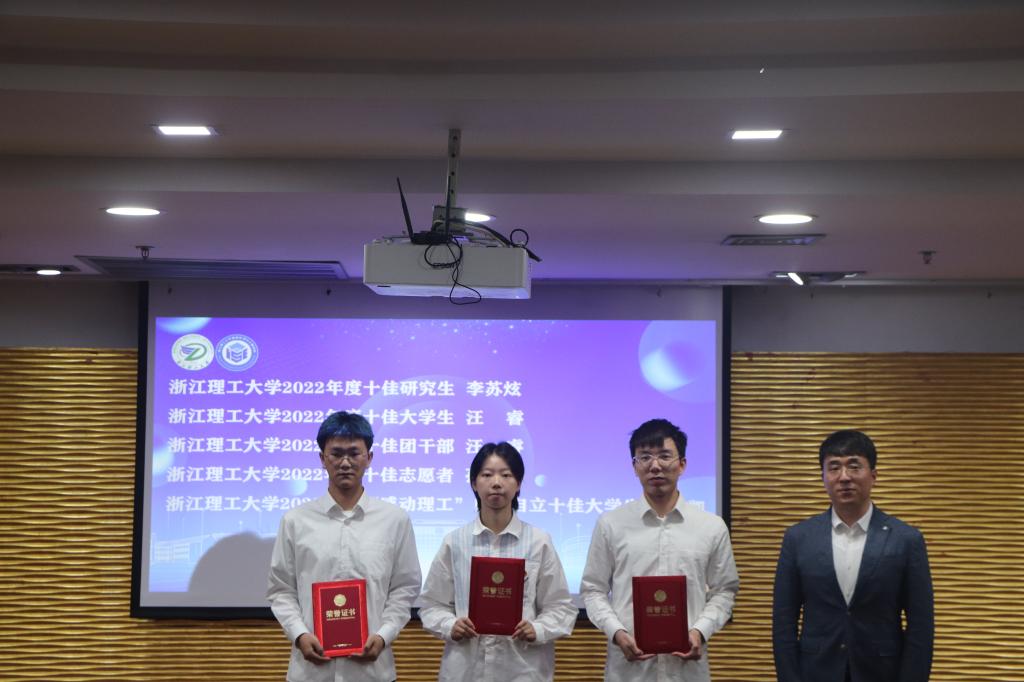表彰环节学院对2022年度先进集体及优秀个人进行了表彰。国家奖学金获得者、十佳大学生汪睿作代表发言,表达对学校学院老师培育的感激之情,并结合自身经历分享了其脚踏实好学知识、大胆尝试不惧失败和心无旁骛刻苦钻研的成长感悟。研究生代表周家豪带领在场的全体同学进行学术诚信宣誓。同学们一致承诺,在学习科研活动中,会遵守学术规范,坚守学术诚信,立志成长为有理想、敢担当、能吃苦、肯奋斗的新时代优秀青年。
