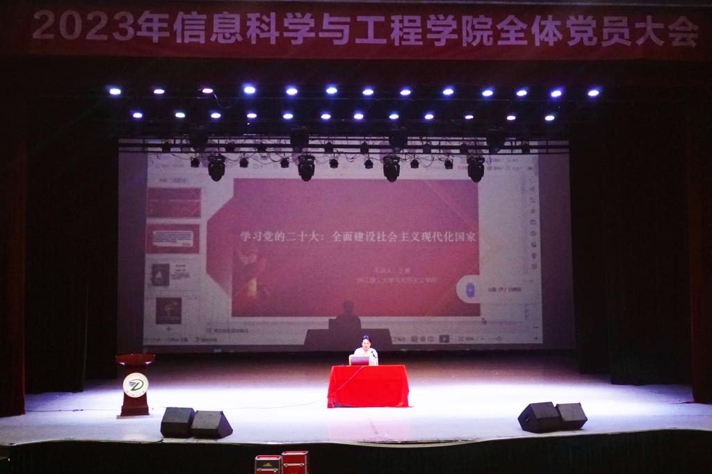 6月7日下午,信息科学与工程学院主题教育专题党课在大剧院举办,马克思主义学院思政课专任教师王勇博士受邀授课,学院全体教工党员和学生党员参加此次活动。活动由学院党委副书记许丽芬主持。