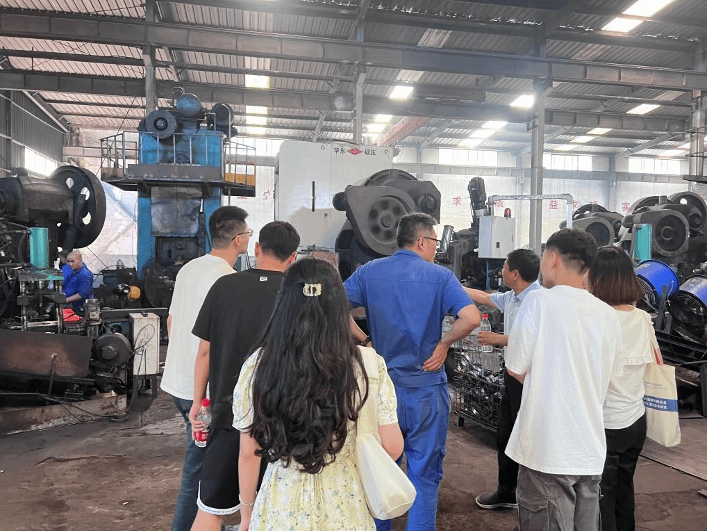 在常山县鑫龙轴承有限公司,总经理赵峰向支部师生介绍了鑫龙轴承的发展史以及当前鑫龙轴承的数字化建设进程。随后,带领支部师生参观了鑫龙轴承的生产线。在生产车间内,机械轰鸣,多条自动化生产线满负荷运转,一块块钢条经过复杂的工序加工后变成一套套锃光瓦亮的轴承。“为更好地满足市场需求、提高产品质量,我们从2022年1月起加快技改升级,对原有老旧机械进行更换,先后投入4000万元打造全自动化锻造生产线,实现机械化‘一条龙’生产。”赵峰表示,目前企业业务订单正持续上升,公司正火力全开组织生产,开足马力赶订单,冲刺全年目标任务。预计2023年销售额将达到1.5亿元。