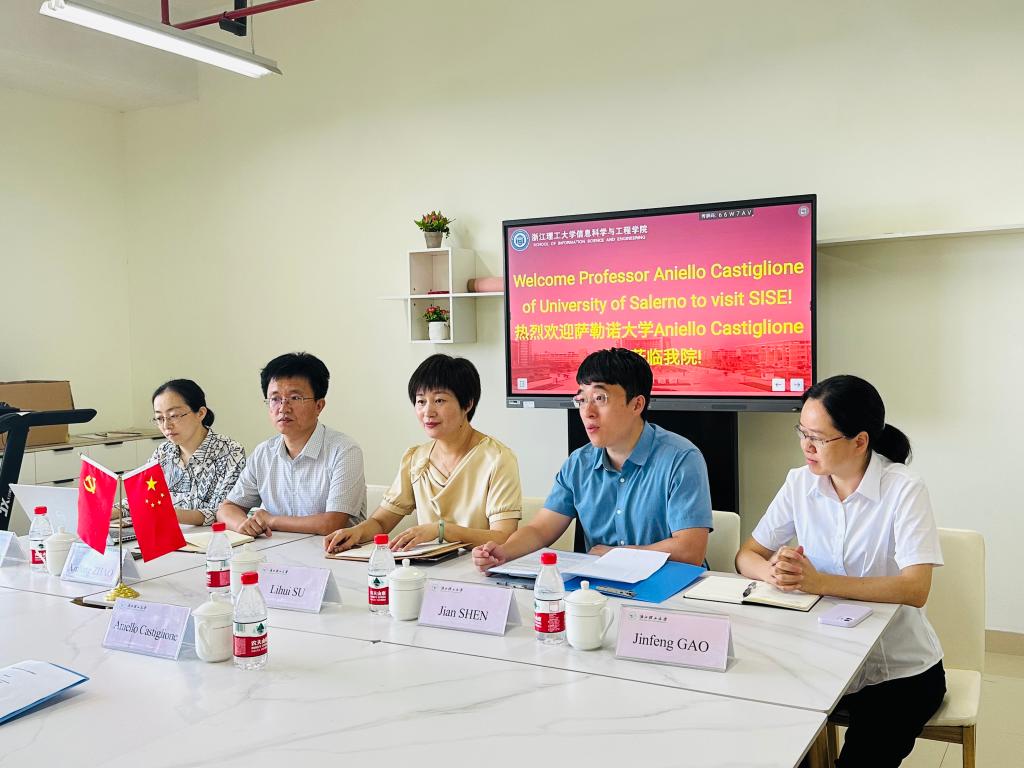 萨勒诺大学Aniello Castiglione教授,浙江理工大学信息科学与工程学院党委书记苏丽辉、院长沈剑、副院长赵新龙、院长助理高金凤、综合办公室主任阮晶晶参加会议。